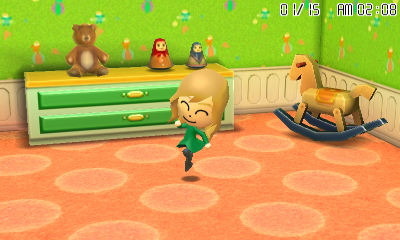 ゲーム内容を簡単に説明すると、自分や家族友人知人などのアバター(Mii)を作り、そのアバターたちの生活を眺める?ゲームです。(多分)